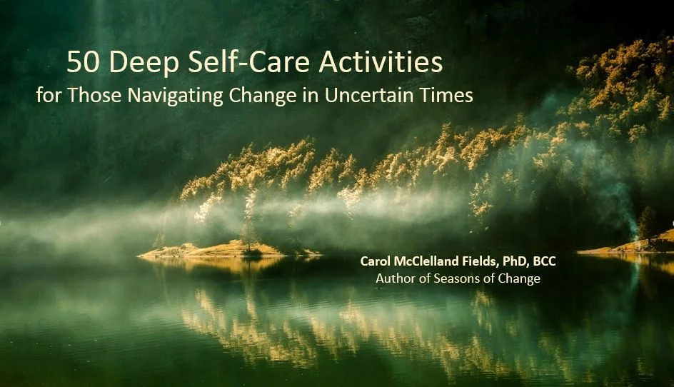 After the introduction, each page of the 50 Deep Self-Care Activities eBook provides a small collection of activities to help you navigate change in uncertain times.